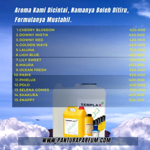 Di tengah lautan aroma yang seragam, kami hadir membawa revolusi wewangian. Kami menyediakan aneka bibit parfum konsentrat untuk kebutuhan industri Laundry, Household, Kosmetik, dan Parfum Body.
